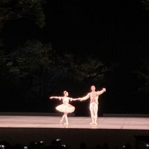 終盤には月が昇ってきて幻想的な雰囲気になり、最後に花火が上がって、クララの夢が覚めると、私も夢心地の感動から我に返った。ステージが自然と一体になった一期一会の感動的な舞台だった。真夏に素敵なクリスマスプレゼントをもらったような素晴らしい時間だった。