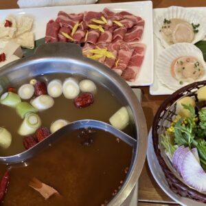 途中でお昼ごはんをいただいた。薬膳料理としてお腹に良いものを出していただいた。
