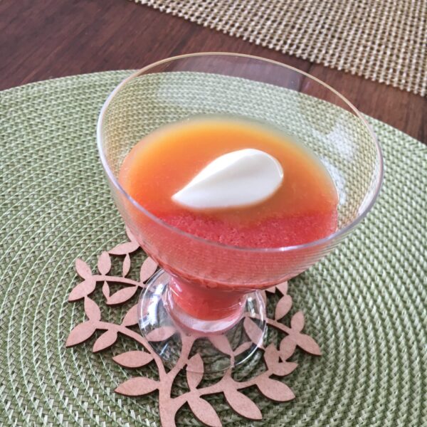デザートは、イチゴとオレンジのジュレとオーギョーチーをいただいた。